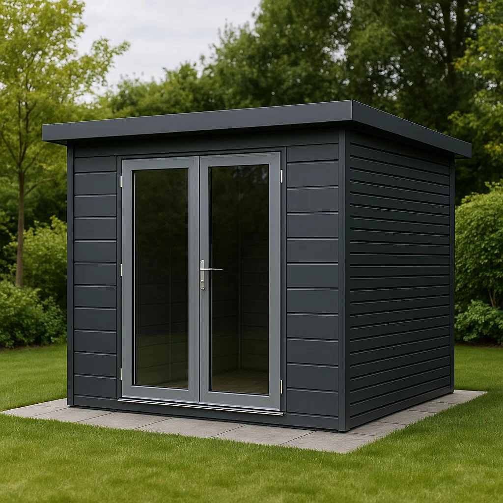 Caseta metálico de almacenamiento gris oscuro de acero galvanizado para jardín. 250x300x240 cm