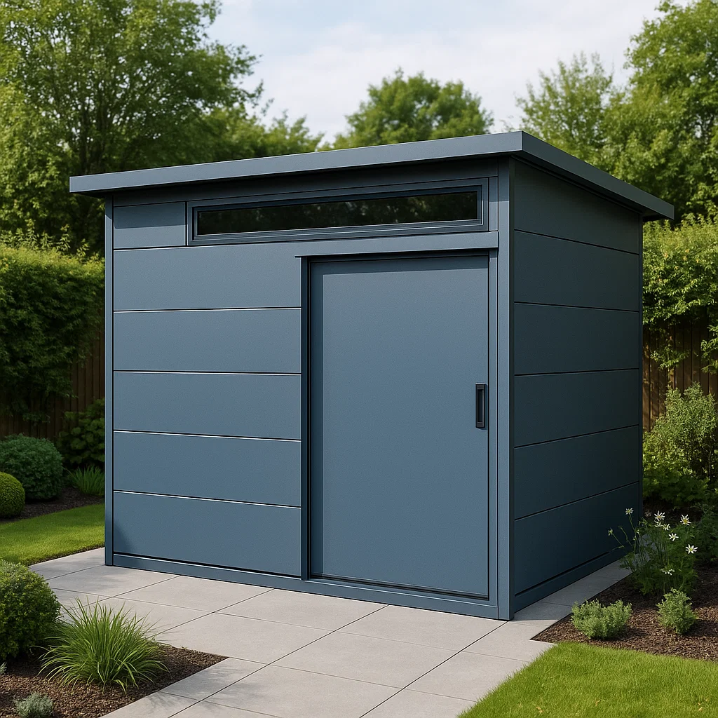 Caseta de jardín. caseta metálica azul grafito de acero para exterior. 220x160x210 cm